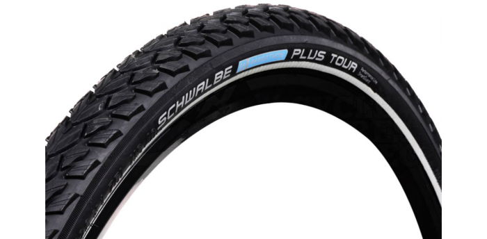 The outer rubber is extremely hard wearing and features a grooved tread for traction on dirt and gravel roads. The Marathon Plus Tour also has a reflective stripe on the sidewall for enhanced visibility.